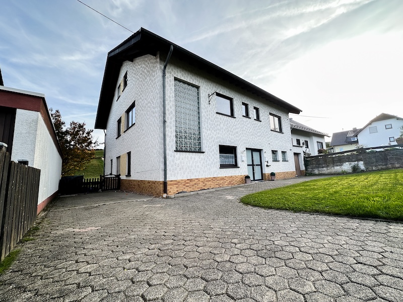 Wohnen mit Aussicht – Zweifamilienhaus in ruhiger Lage von Schalkenbach. Dieses charmante Zweifamilienhaus aus den 1980er-Jahren vereint solide Bauqualität mit einem außergewöhnlichen Weitblick in die Natur. In ruhiger, gewachsener Lage von Schalkenbach gelegen, bietet es die ideale Kombination aus Selbstnutzung und Kapitalanlage. Das Haus ist in zwei Wohneinheiten aufgeteilt: Die Erdgeschosswohnung ist derzeit vermietet und sorgt für eine attraktive Mieteinnahme. Die Obergeschosswohnung steht frei und begeistert durch ihre helle, freundliche Atmosphäre und einen beeindruckenden Panoramablick, der sich von der Hausterrassenseite bis über die umliegenden Hügel erstreckt. Typisch für die Bauzeit finden sich Holztüren, großzügige Fensterflächen und ein klar strukturierter Grundriss. Das Haus vermittelt sofort ein Gefühl von Wärme und Beständigkeit – ideal für alle, die ein solides Zuhause mit Potenzial suchen. Ob Eigennutzer, die die obere Wohnung selbst bewohnen möchten, während sie die Erdgeschosswohnung vermieten, oder Kapitalanleger mit Weitblick – dieses Objekt bietet vielseitige Möglichkeiten.Die ruhige Wohnlage in Schalkenbach, kombiniert mit der Nähe zu Adenau und Bad Neuenahr-Ahrweiler, macht das Haus zu einem idealen Rückzugsort mit guter Anbindung.