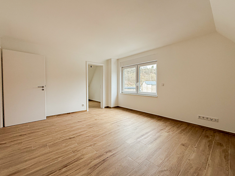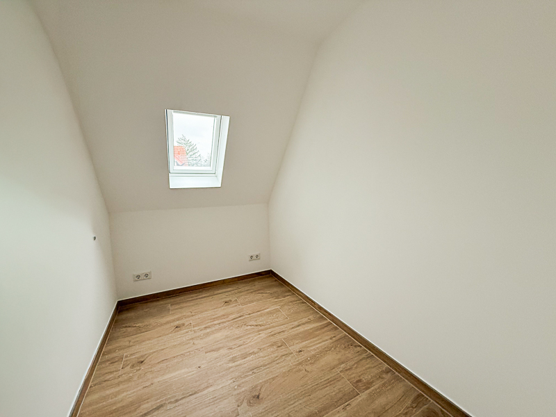 Das 1. Obergeschoss verfügt über drei gut geschnittene Schlafzimmer, die flexibel als Schlaf-, Arbeits- oder Gästezimmer genutzt werden können. Eines der Schlafzimmer bietet ein separates, kleines Ankleidezimmer, das zusätzlichen Komfort und diskreten Stauraum gewährleistet.